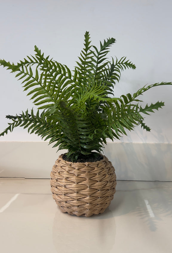 Bring a touch of lush greenery and natural elegance into your home with this beautiful artificial fern, perfectly nestled in a charming, hand-woven basket-style pot. Its realistic fronds offer a vibrant, maintenance-free accent for any room, blending seamlessly with various decor styles.