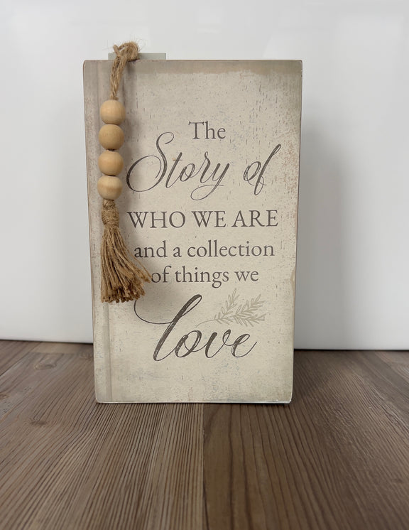 Give your living room a cozy vibe with the help of this Love Book Wood Decor. This piece is shaped like a book with white pages and a distressed cover. There is a white bookmark poking out from between the pages embellished with a beaded tassel to complete the look. Start your own story of what makes your family unique with this thoughtful decoration!
