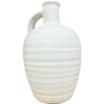 Add some texture to your favorite blooms or branches with this simple white vase. Texture is hand-applied for a stucco look, with small black specks shining through that vary from piece to piece. Textured for an artisanal look, the matte white glaze is fresh and modern while keeping all the attention on the clean ceramic curves.